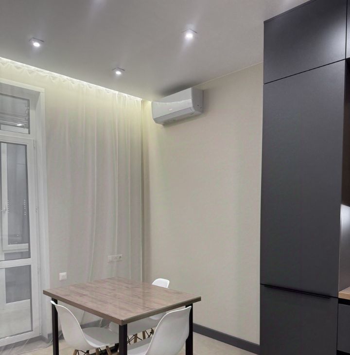 Установлена сплит-система кондиционирования Gree на все жилые комнаты и на кухню. Стиральная, посудомоечная машина, свч печь, холодильник, плита, духовка, вытяжка в шахту. Квартира полностью мебелизирована. Установлены панели с вешалками в коридоре, обувницы, зеркала, шкафы, комоды, кровати с подъемом из премиального материала на фурнитуре Blum.