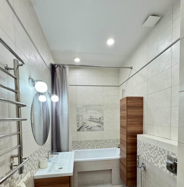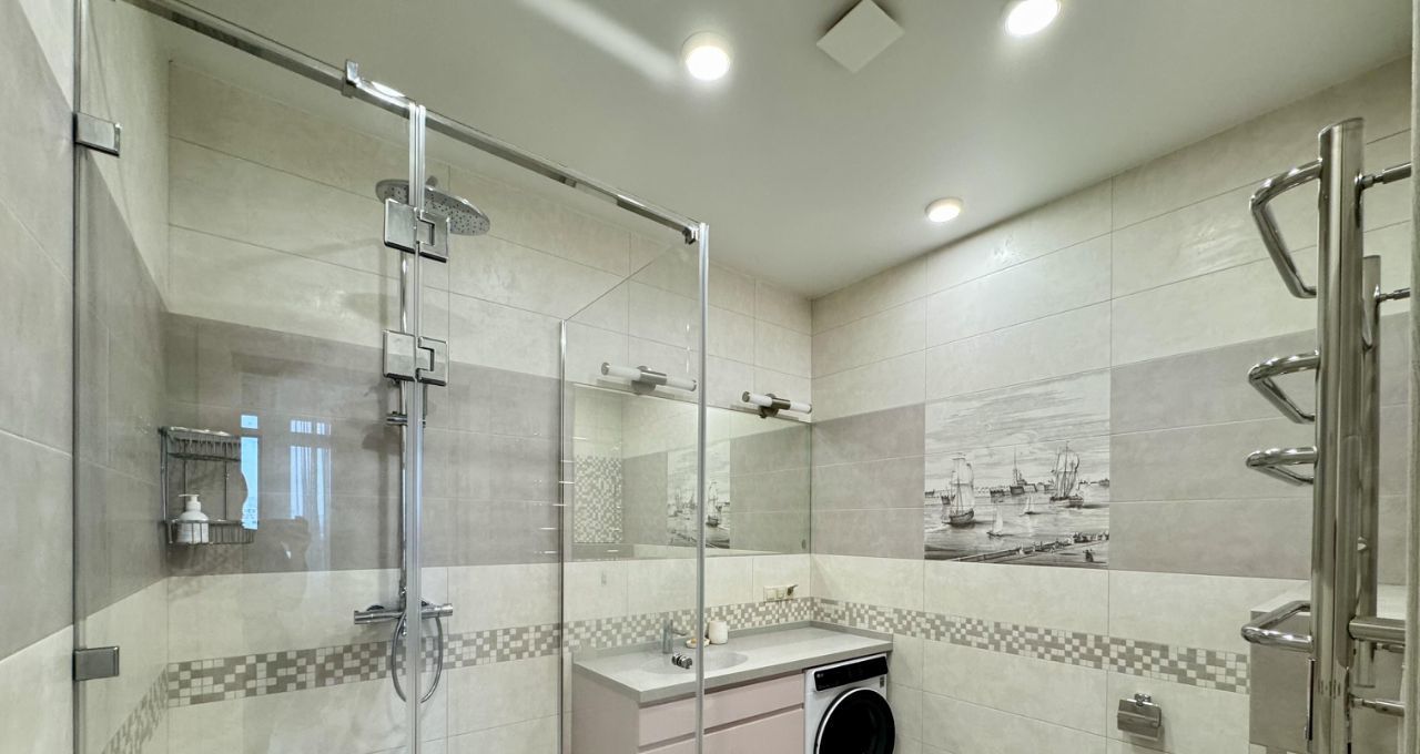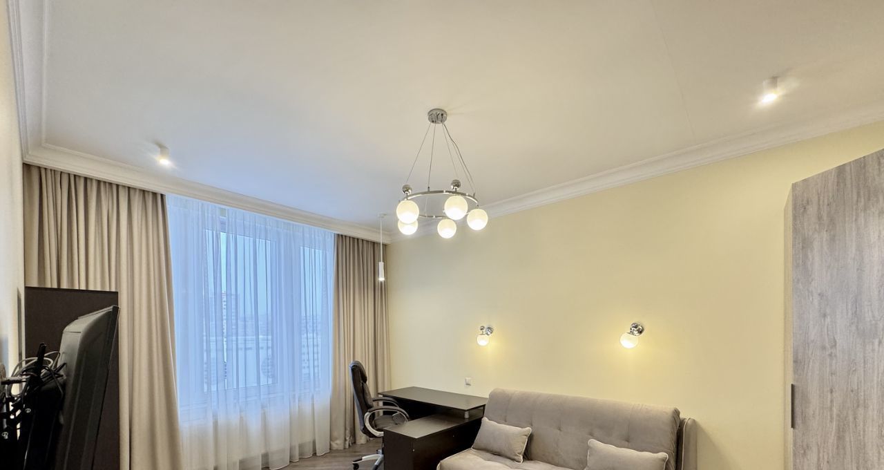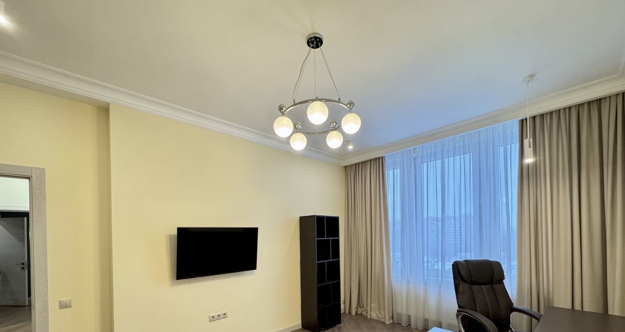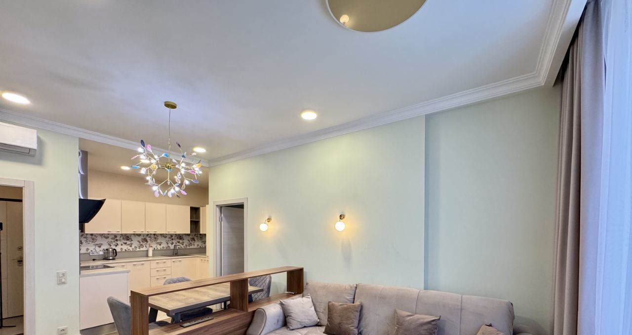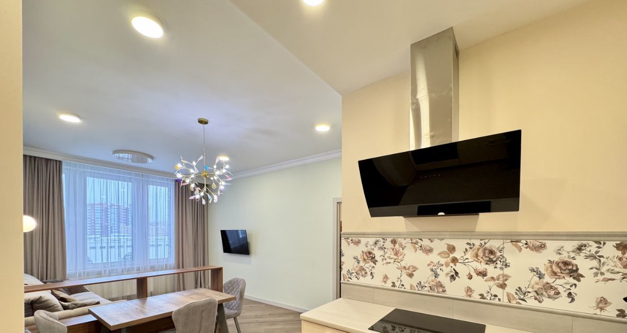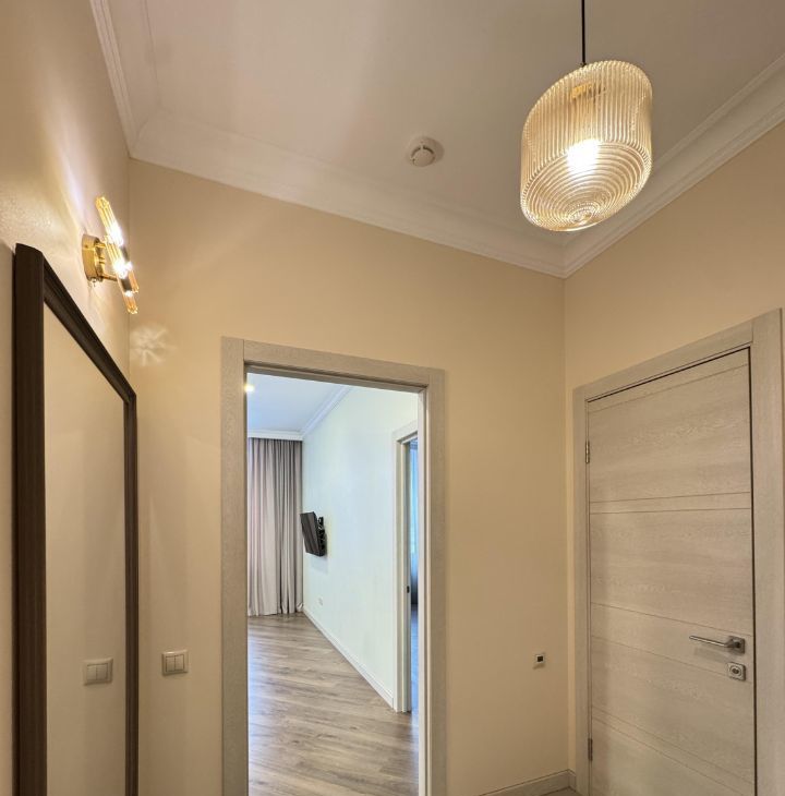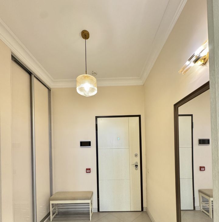 В квартире выполнен качественный современный ремонт, создающий атмосферу комфорта и эстетики. Квартира никогда ранее не сдавалась, всё абсолютно чистое и свежее. Интерьер полностью укомплектован необходимой мебелью и бытовой техникой для вашего удобства: установлены кондиционеры, посудомоечная машина, холодильник, стиральная машина и телевизор.