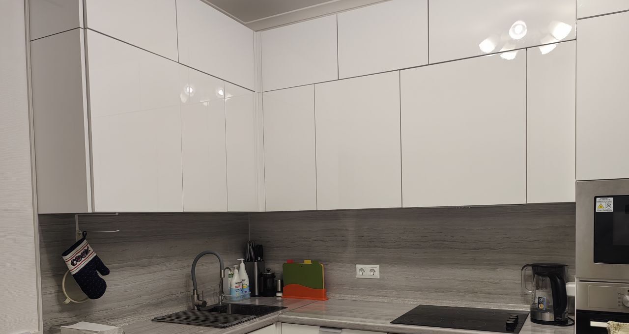 духовой шкаф. посудомоечная и стиральная машины. Один полноценный санузел с уютной ванной. Одна просторная гардеробная для бережного хранения вашей одежды. Из окон с увеличенными рамами открывается прекрасный вид на Москву, высокий этаж гарантирует большое количество света и уюта в квартире. Вся отделка и мебель полностью новые. Квартира на последнем этаже, сверху тех этаж - тишина и покой - никто не будет топать над головой.