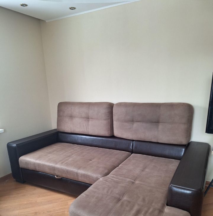 Полностью укомплектована мебелью. Большая 2-спальная кровать с новым дорогим качественным ортопедическим матрасом, большой угловой диван, 2 шкафа-купе, встроенная кухня, микроволновка, большой новый холодильник, стиральная машина, кондиционер, 2 больших телевизора. Фотографии квартиры реальные.