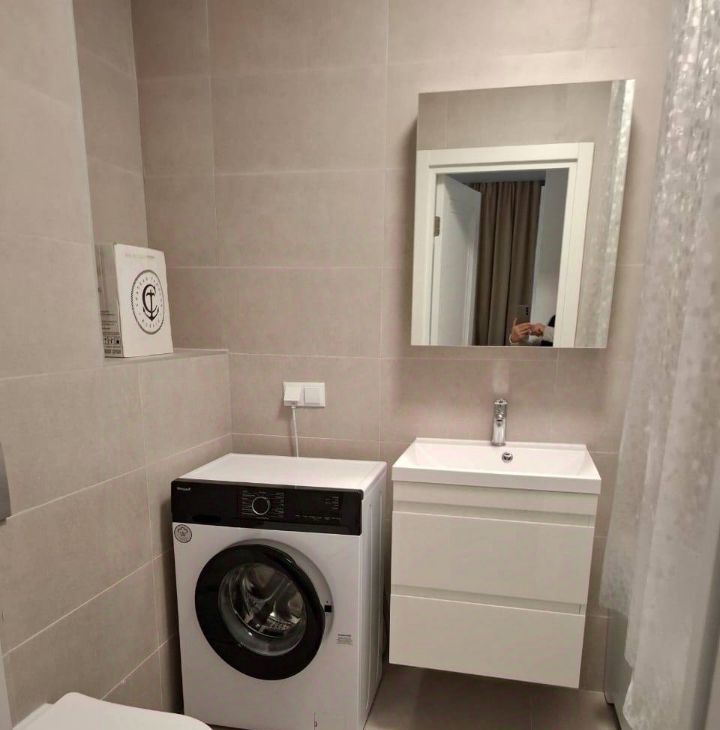 Квартира оборудована всем необходимым для комфортного проживания. На кухне и в комнате есть мебель, а также современная техника: холодильник, телевизор и стиральная машина. Ванная комната с ванной и отдельным санузлом.