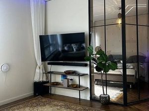 Кухня-гостиная 22,5 м² — просторная и функциональная. Встроенный гарнитур от "Стильные кухни", вся техника Electrolux и Haier: холодильник No Frost, индукционная варочная панель, духовой шкаф, встроенная СВЧ, посудомоечная машина, чайник и каминная вытяжка. Есть обеденная зона на 4 человека, подсветка рабочей зоны, кондиционер, Smart Android TV Sony и уютный угловой диван с местом для хранения.