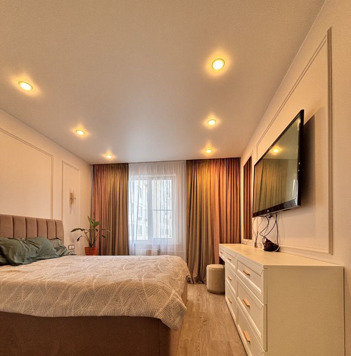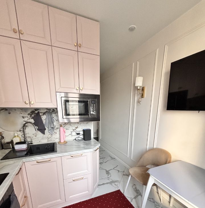 Кухонный гарнитур с хорошей техникой, много мест для хранения. Оборудованная спальня и гостиная. Есть все необходимое для комфортного проживания.