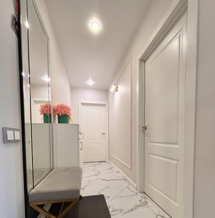 В квартире произведен евроремонт с использованием дорогостоящих отделочных материалов.