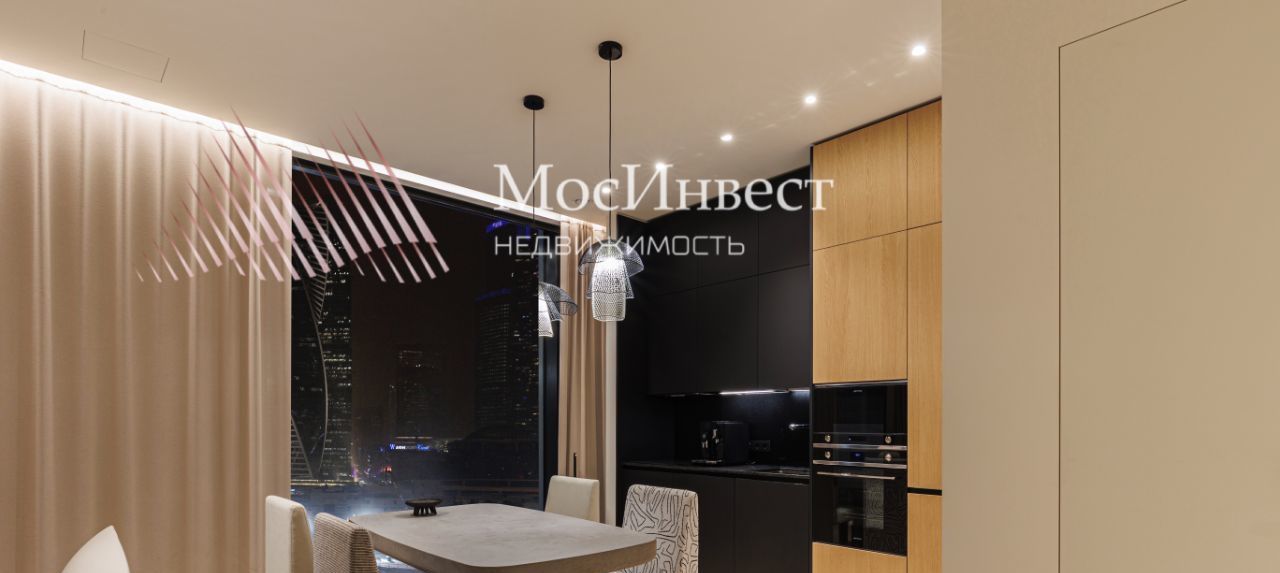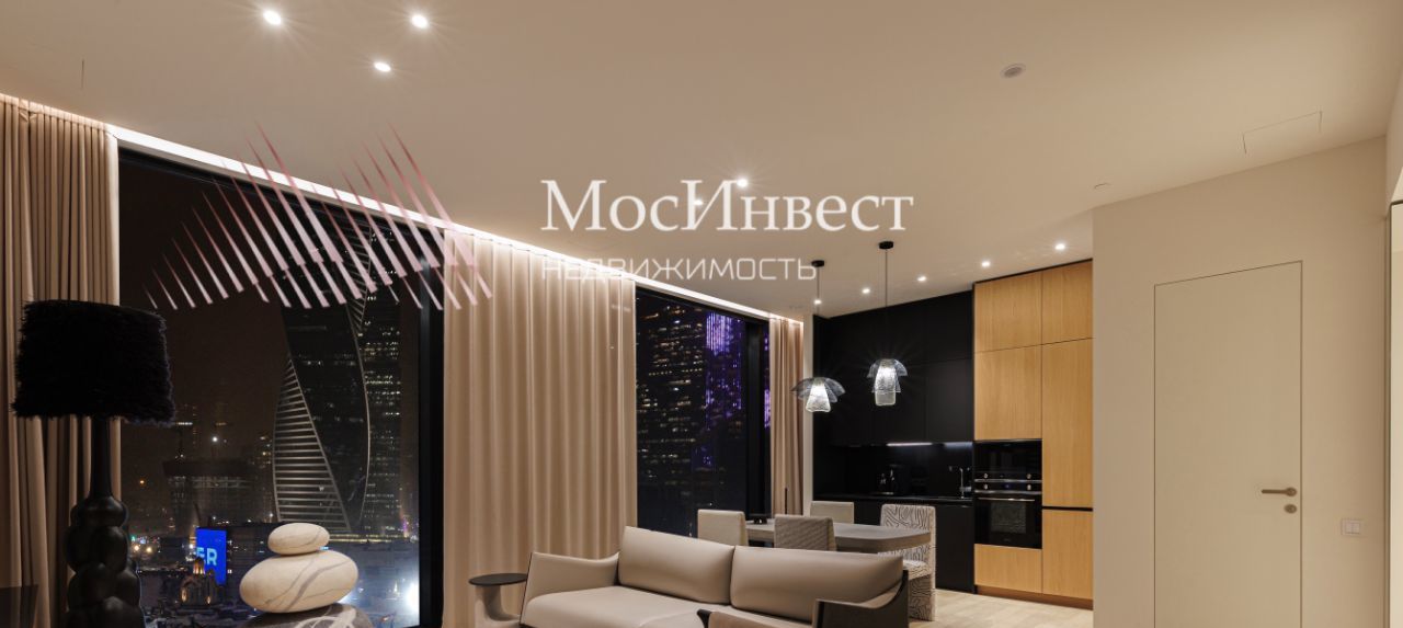 Из панорамных окон квартиры открываются потрясающие открытые виды на реку и Москва Сити.