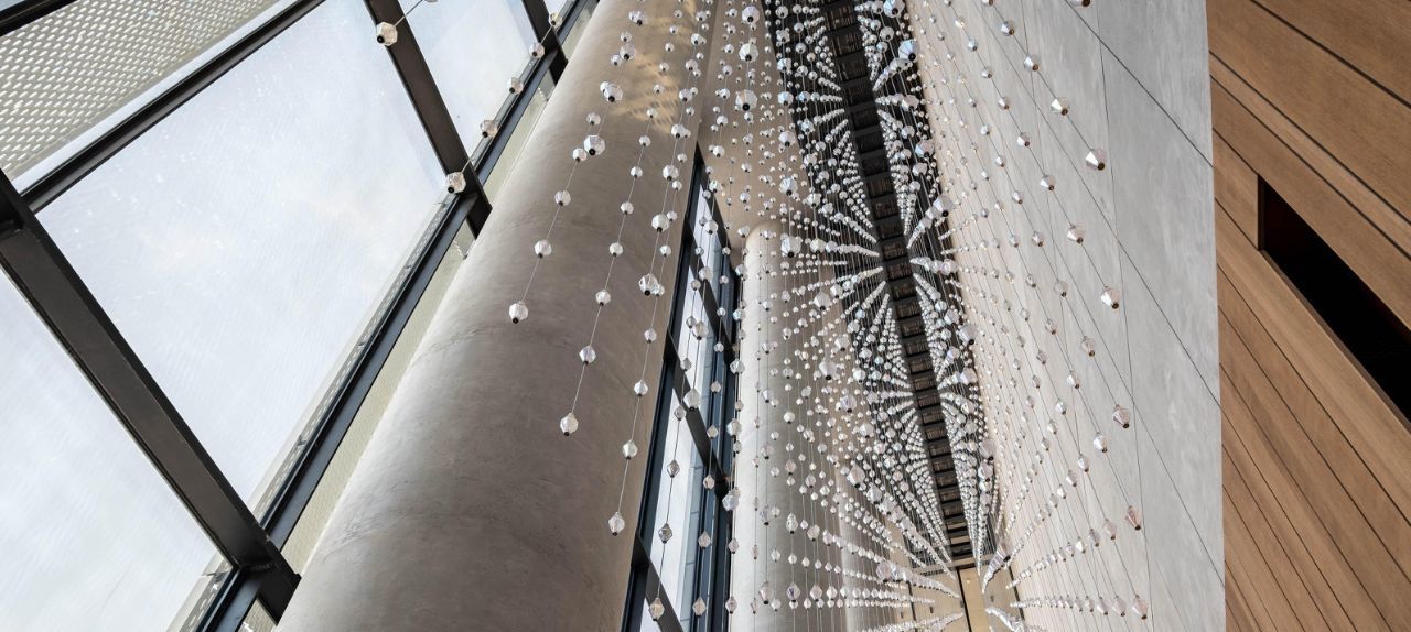 Предусмотрено большое количество сценариев освещения с использованием как точечного освещения, так и люстр, сделанных на заказ специально для этой квартиры.