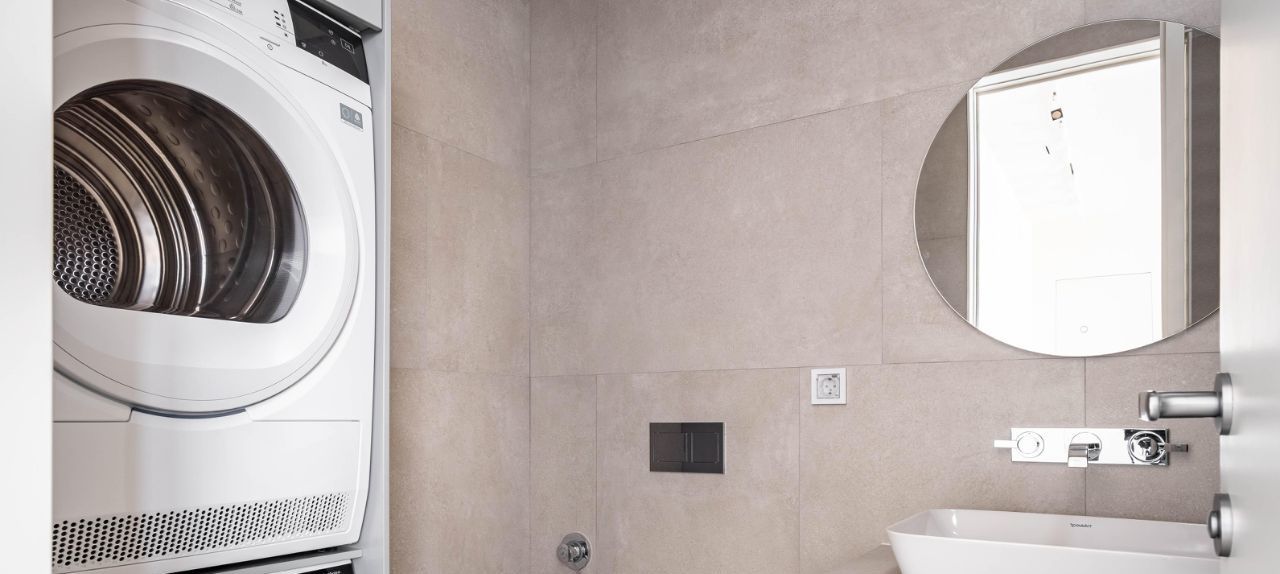 Две ванных комнаты оснащены немецкой сантехникой и аксессуарами фирмы Grohe, а также шведской стиральной и сушильной машиной.