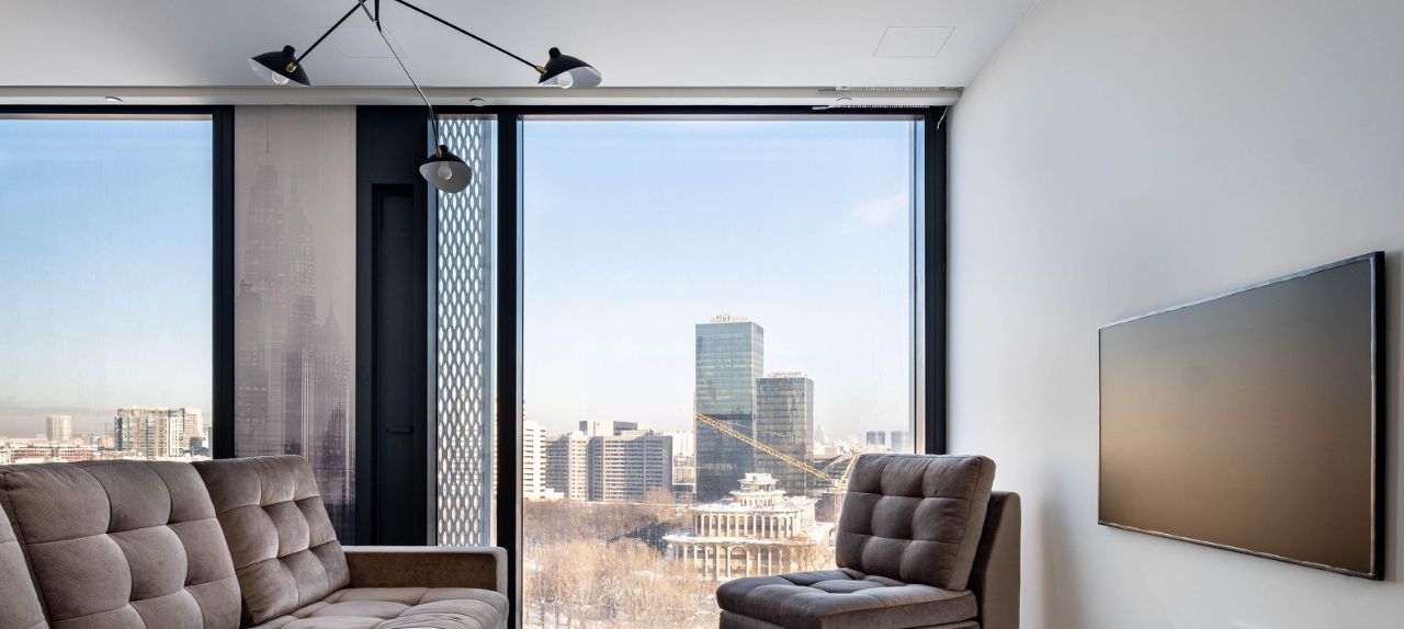 Все комнаты оснащены блэкаут шторами с электроприводом, изготовленными по индивидуальному заказу.