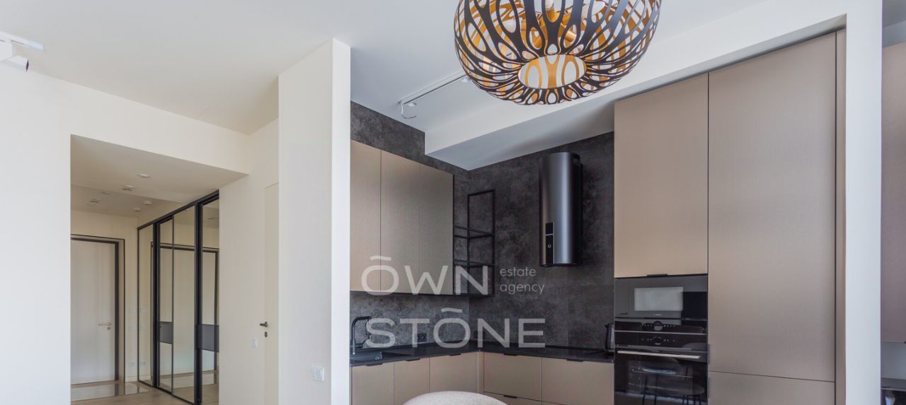 Просторная кухня-гостиная с итальянским гарнитуром и премиум-техникой (сенсорное управление, винный шкаф).