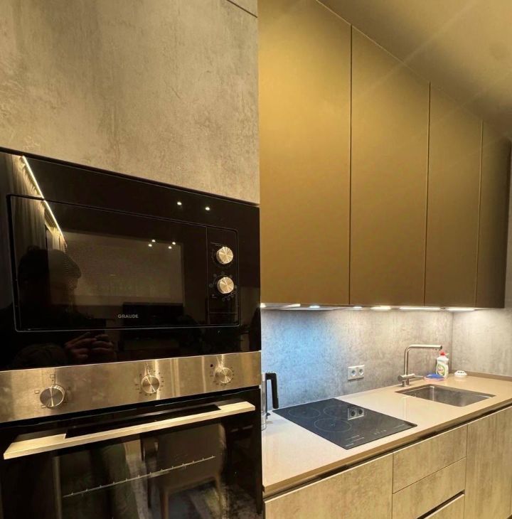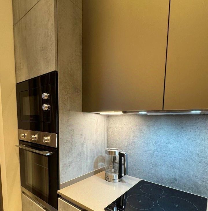 В квартире есть все необходимое для комфортного проживания. Просторная кухня оборудована современной техникой: холодильник, посудомоечная машина, кондиционер и телевизор. В комнате и на кухне установлена качественная мебель. В ванной комнате — душевая кабина и стиральная машина. Благодаря дизайнерскому ремонту, интерьер выглядит стильно и уютно.