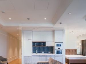 Удачное планировочное решение : комфортное пространство из 1-ой видовой спальной комнаты с собственным санузлом и просторной кухней-гостиной площадью 25 кв. м. Панорамные окна ориентированы на Москва-реку, высотку гостиницы Украины, а также на парк Красная пресня.