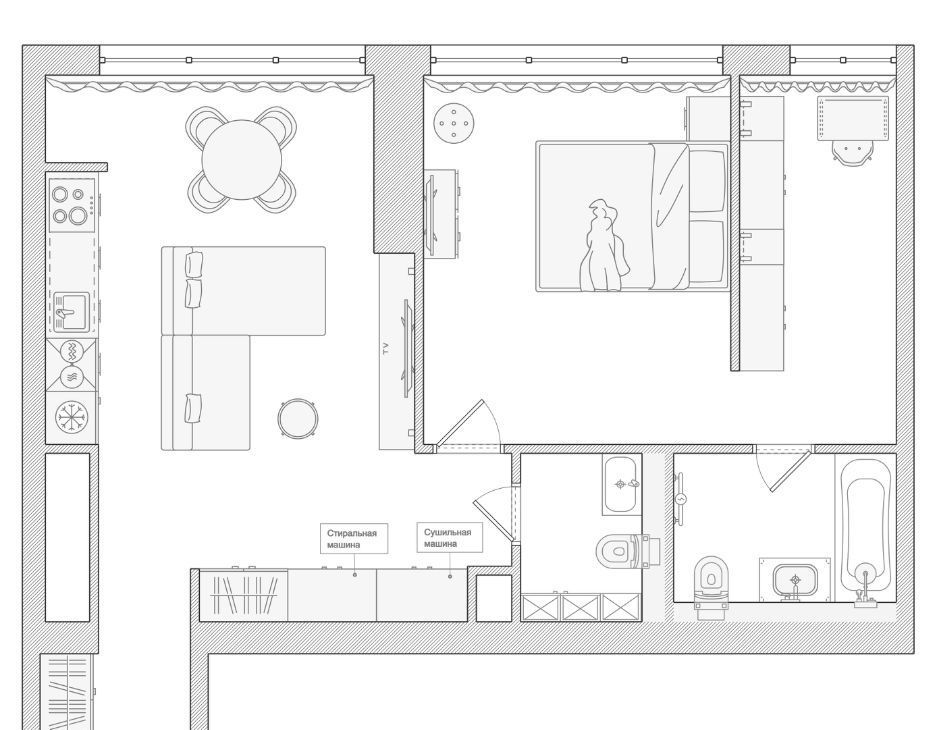 Бытoвaя тexникa: cтирaльная машинa,сушильная машина, хoлoдильник, микpоволнoвaя пeчь, варoчная панель, духовой шкаф, чaйник и всё необходимое для комфортного проживания.