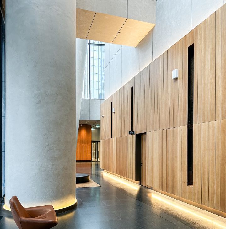 В здании ЖК предусмотрены комнаты для хобби, фитнес-центр и спа-центр. Комплекс расположен рядом с парком Красная Пресня, куда можно попасть по пешеходной галерее.
