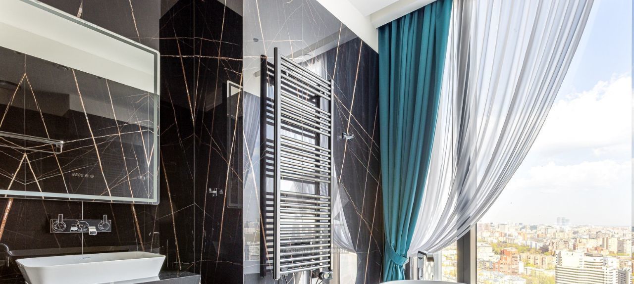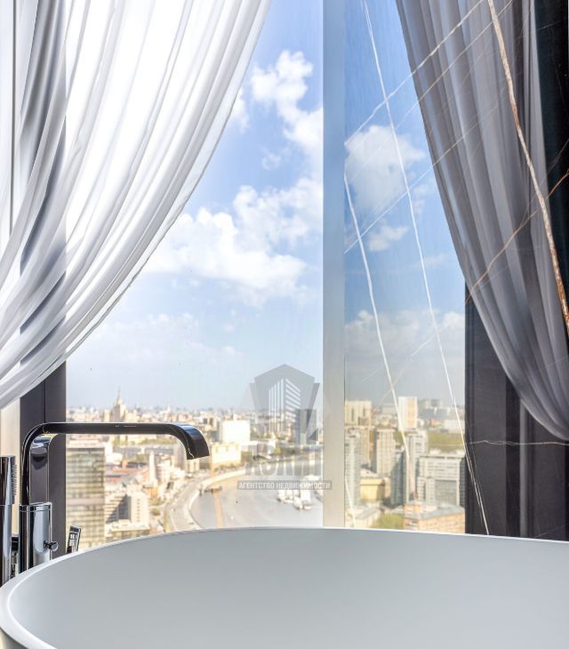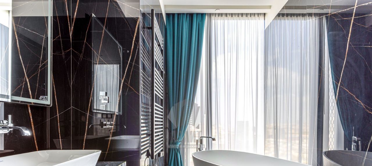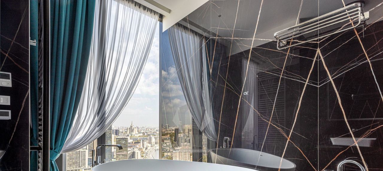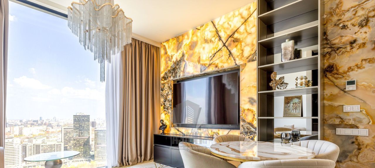 Дизайнерский ремонт, камень оникс с подсветкой, дорогая мебель, ванна с окном на Москву.