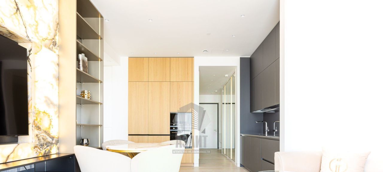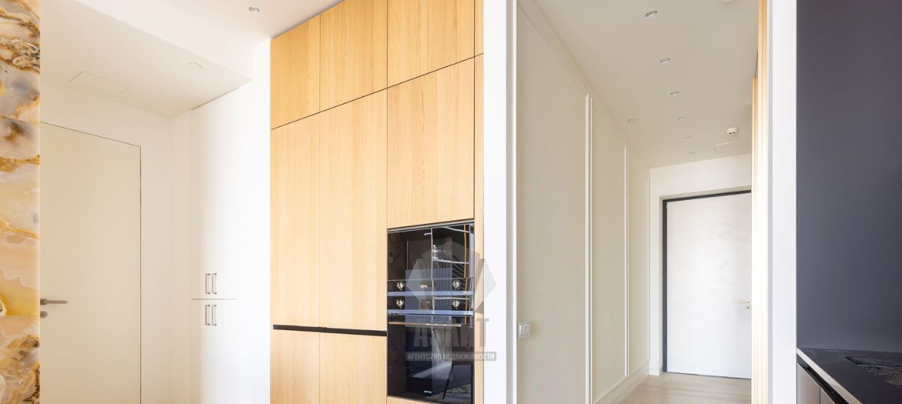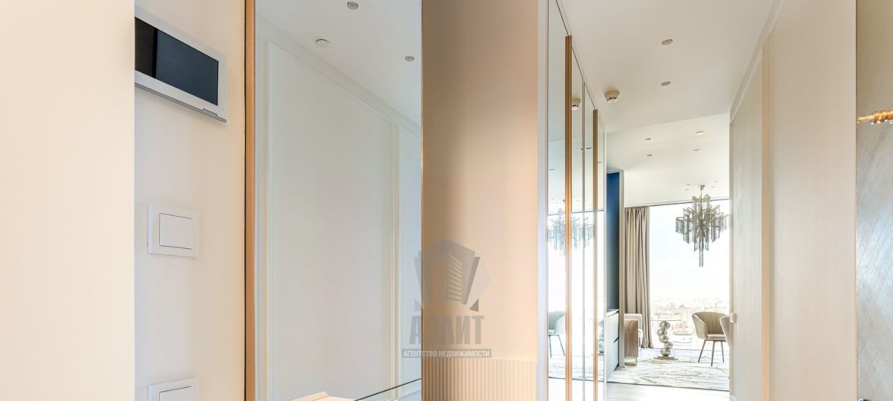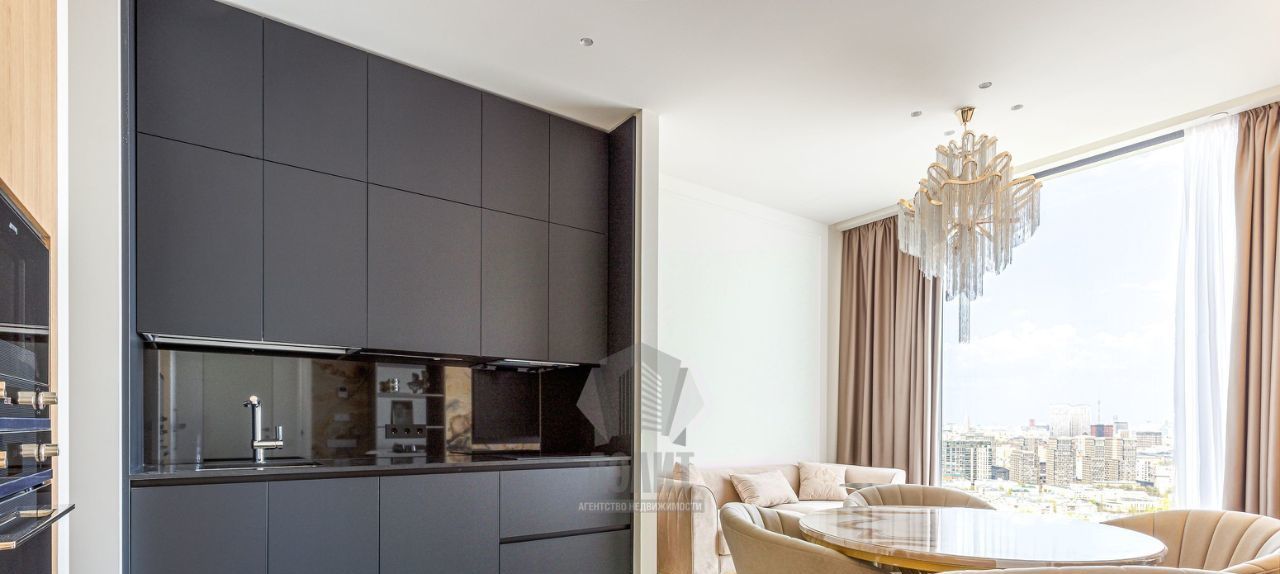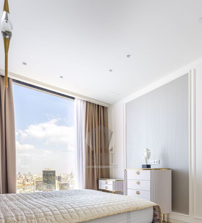 Удачное планировочное решение. В квартире просторная кухня-гостиная с элегантным классическим интерьером, эргономичная, современная кухня с техникой smeg, светлая спальня с широкой кроватью, 2 санузла. Есть душ и ванна. Продуманный и вместительный гардероб. Квартира расположена на 27 этаже в башне park. Делалась для собственного проживания.