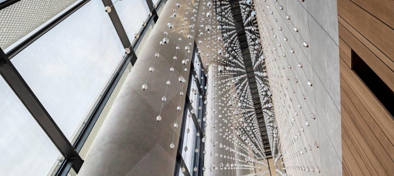 Предусмотрено большое количество сценариев освещения с использованием как точечного освещения, так и люстр, сделанных на заказ специально для этой квартиры.