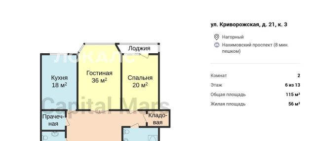 2-к кв. Москва Криворожская ул., 21К3 (115.0 м²)
