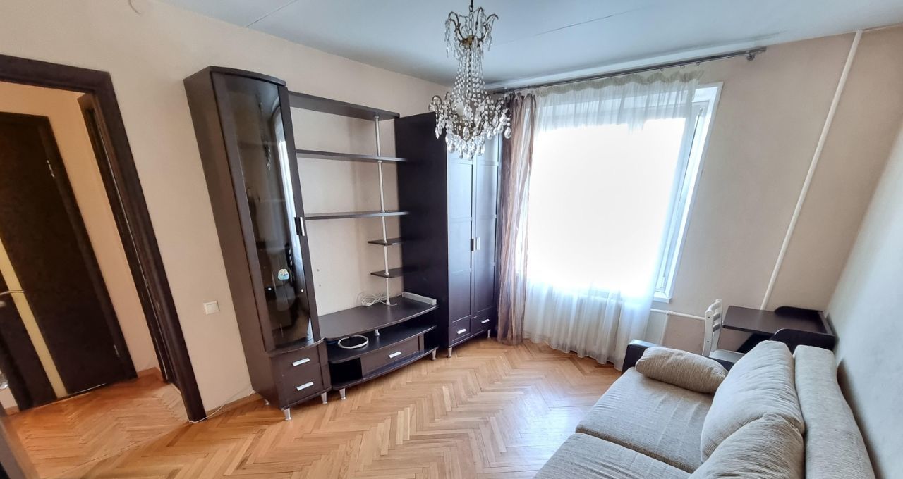 5 минут пешком от м. Водный стадион. Удачный вариант для семьи с детьми, так как квартира после ремонта с изолированными комнатами 14 м. кв. и 9 м. кв. Стеклопакеты, балкон застеклённый - зимой в квартире тепло. Окна на 2 стороны дома - летом прохладно.