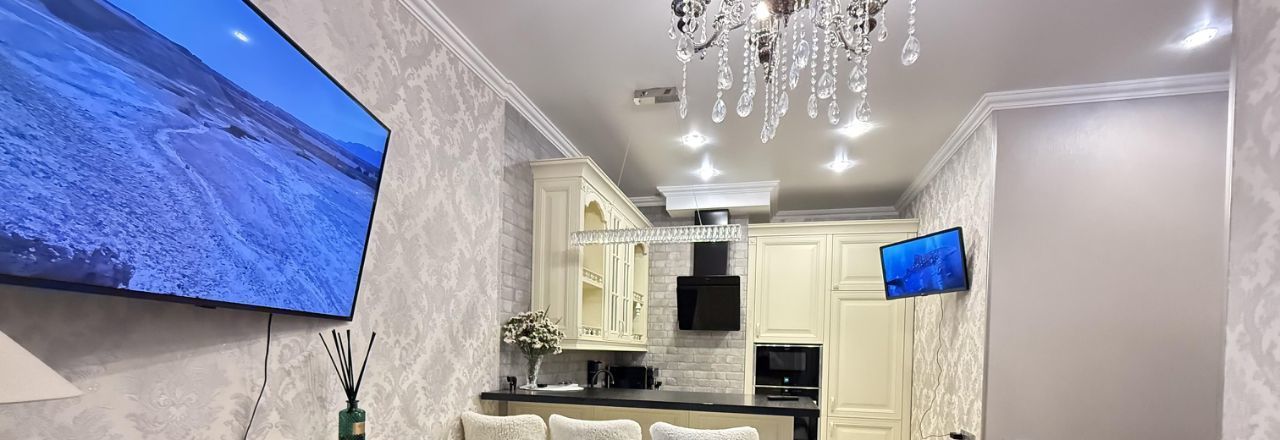 В квapтирe сделан cвeжий, дизайнepский евроремонт, который был сделан для себя, соответственно всё продумано до мелочей и выполнено из качественных материалов.
