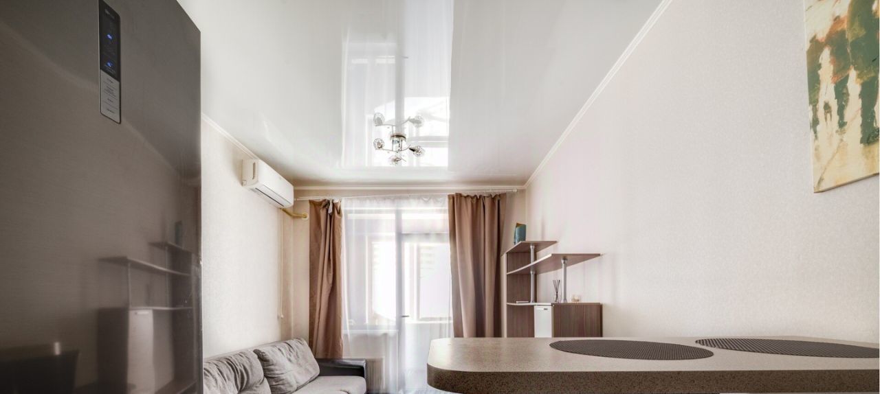 Квартира с современной планировкой студийного плана, спальня и кухня-гостиная. В квартире выполнен современный ремонт в европейском стиле.