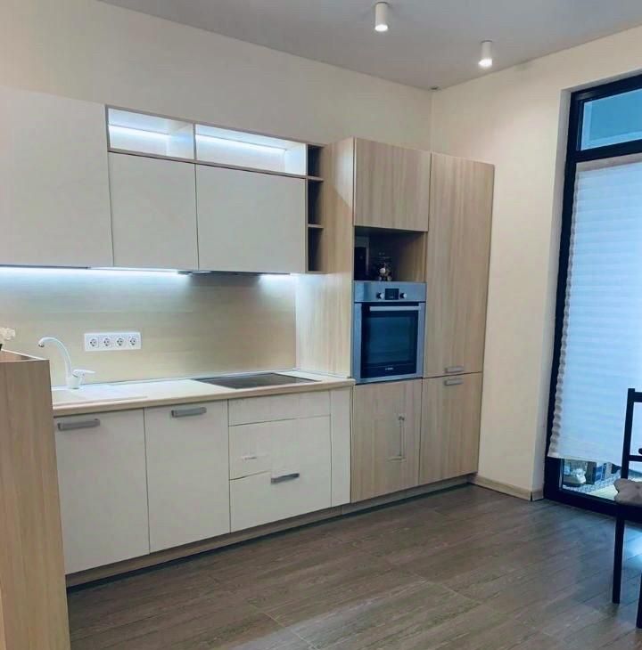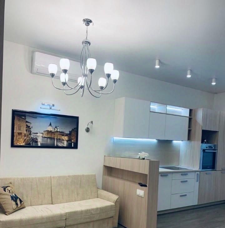 Квартира с качественным евроремонтом. В комнатах и на кухне есть вся необходимая мебель. Просторная кухня площадью 8 кв. м оборудована современной техникой: холодильник, посудомоечная машина, стиральная машина и кондиционер. В одной из комнат установлен телевизор. Санузел совмещённый с душевой кабиной. Окна выходят во двор, что обеспечивает тишину и уют. Балкон добавляет дополнительное пространство для отдыха.