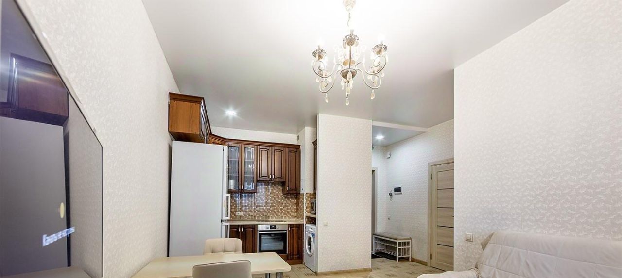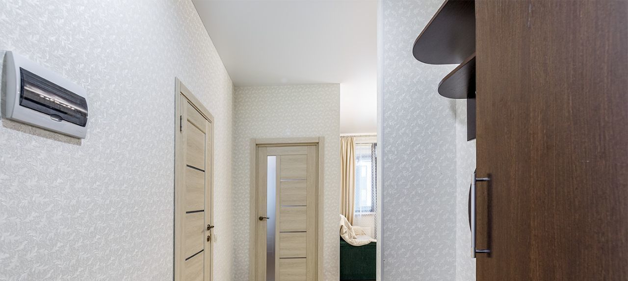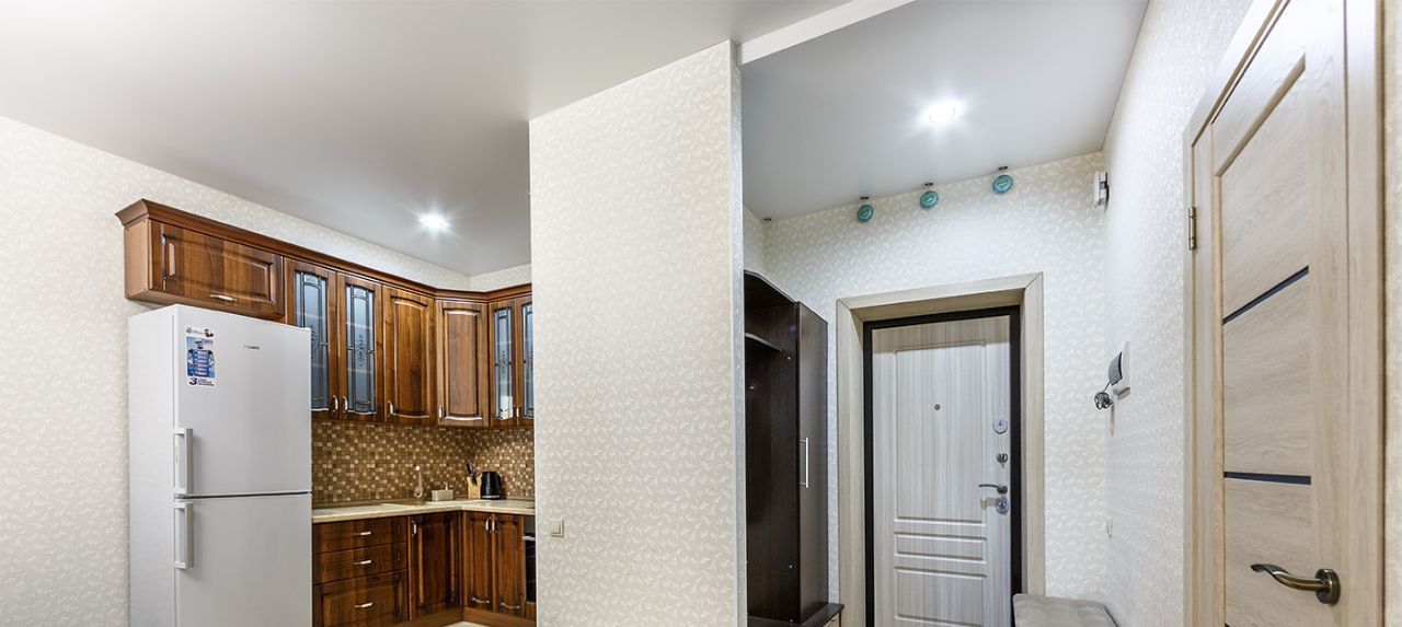 Удобная планировка: отдельная спальня и кухня-гостиная, где есть и зона отдыха, и место для работы. Подходит для одного человека или пары.