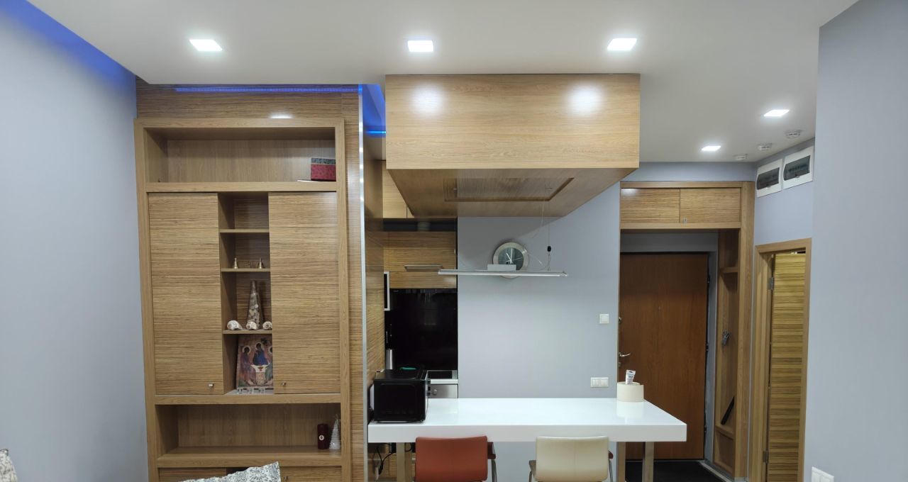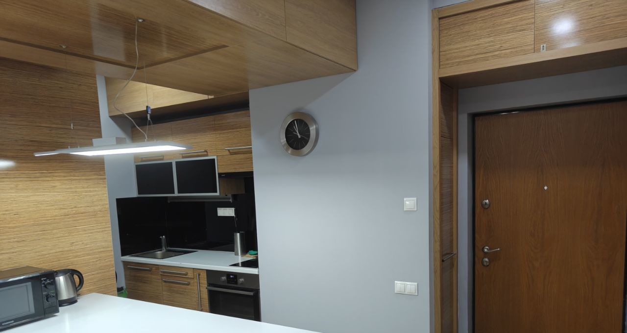 Диван раскладывается, кровать 1.5, телевизор, душ, посудомойка, индукционная плита, микроволновка, кондиционер, балкон с креслами, большой зеркальный шкаф купе