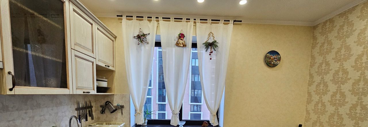 Сдаётся в аренду просторная квартира в ЖК Водный, общей площадью — 71,8 кв. м. формат Евротрёшка (кухня-гостиная + 2 комнаты) с дизайнерским ремонтом. Квартира расположена на 16-м этаже 26-этажного современного монолитного дома 2015 года постройки.