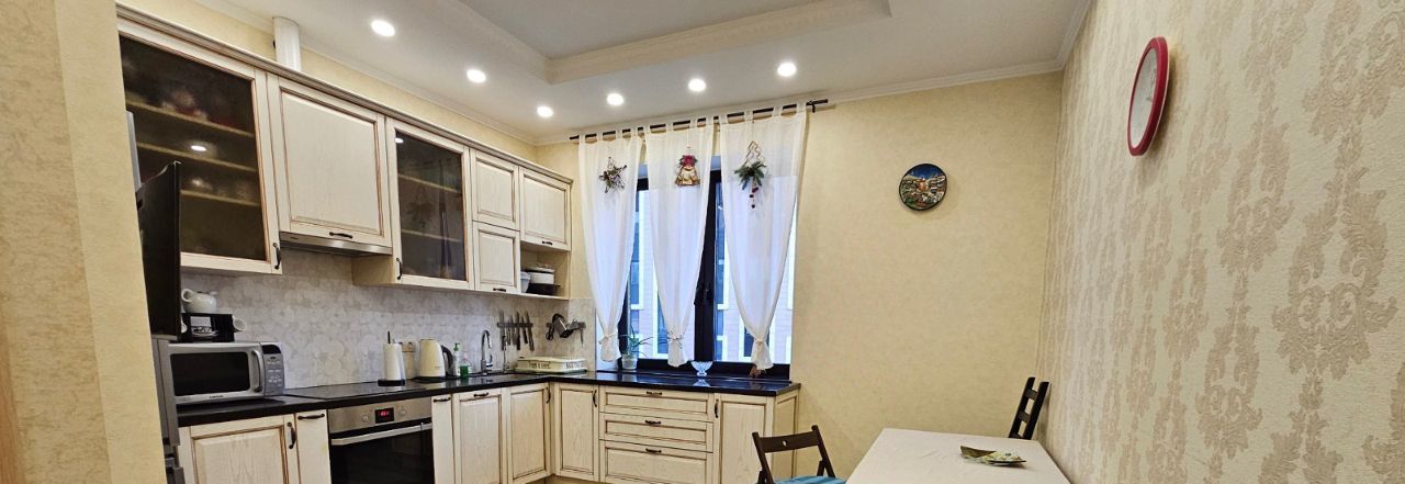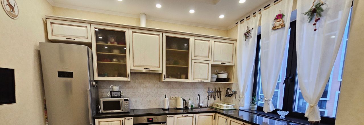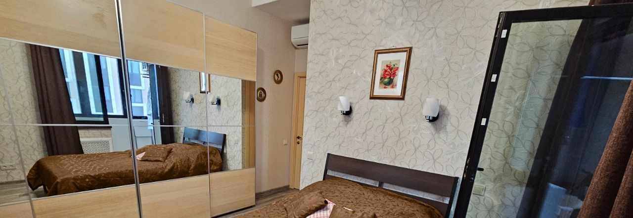 Квартира полностью меблирована и готова к комфортному проживанию. На кухне и в комнатах установлена современная мебель. Есть вся необходимая техника: кондиционеры, холодильник, телевизоры, посудомоечная и стиральная машины.