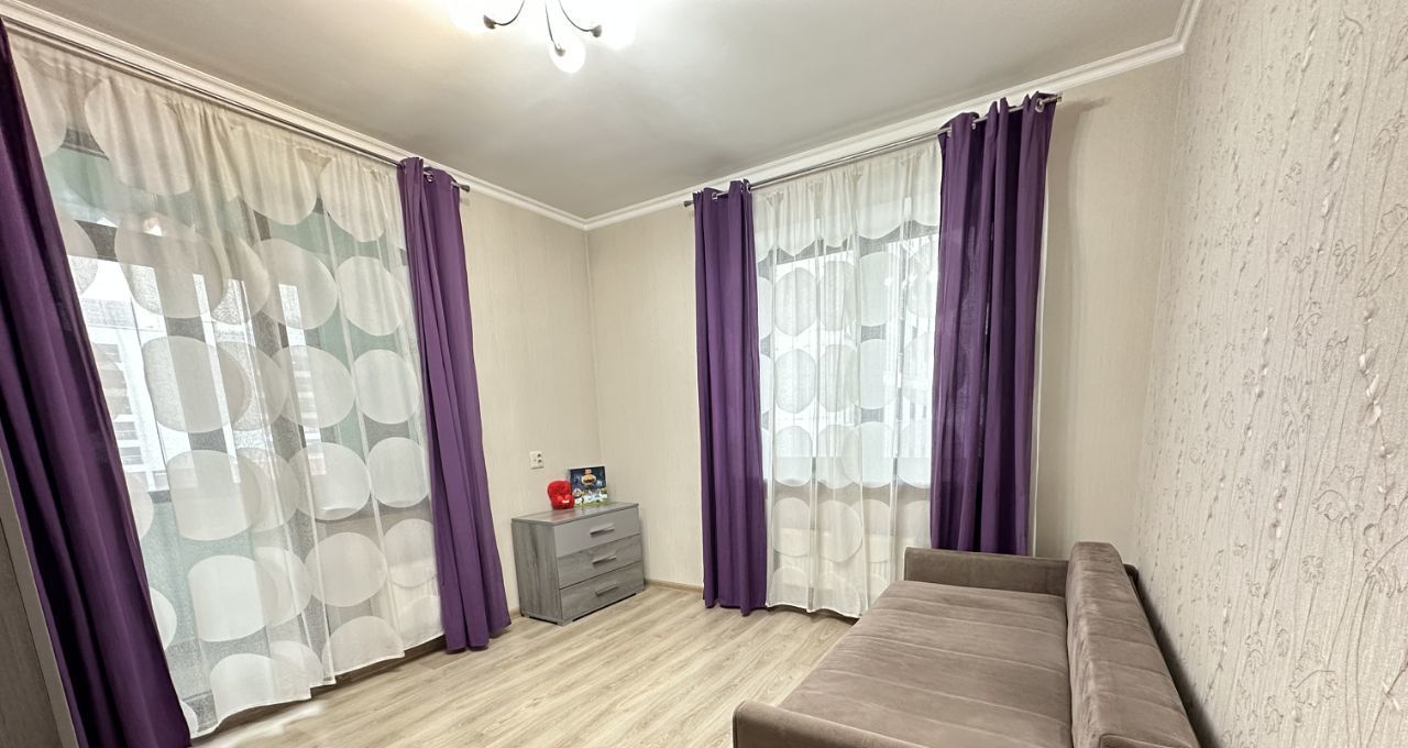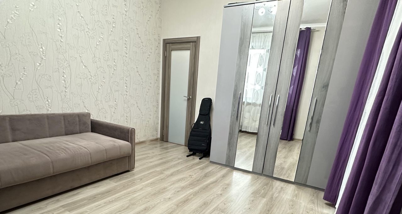 Комната 16 кв м - диван раскладной, удобный для сна, шкаф для одежды, комод. В квартире два санузла — совмещенный с ванной и отдельный.