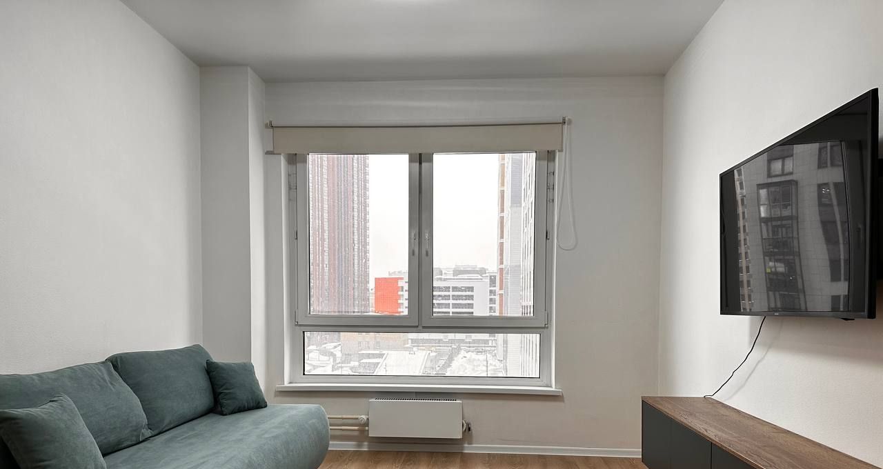 двухкомнатная квартира 36 м² на Кронштадтском бульваре, д. 8с1, подъезд 2, 6 этаж из 33. Монолитный дом, потолки 2,68, окна на улицу. Квартира сделана аккуратно и по уму: мебель на заказ, чтобы не спорить с геометрией и не терять место под хранение.