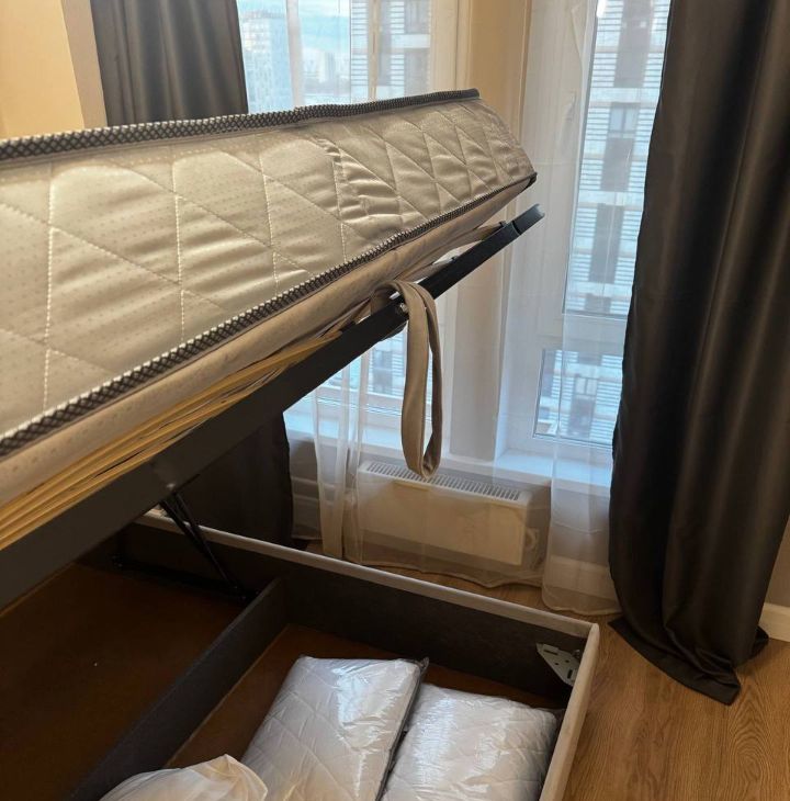 Просторная кухня-гостиная, изолированная спальня, совмещенный санузел, много мест для хранения.