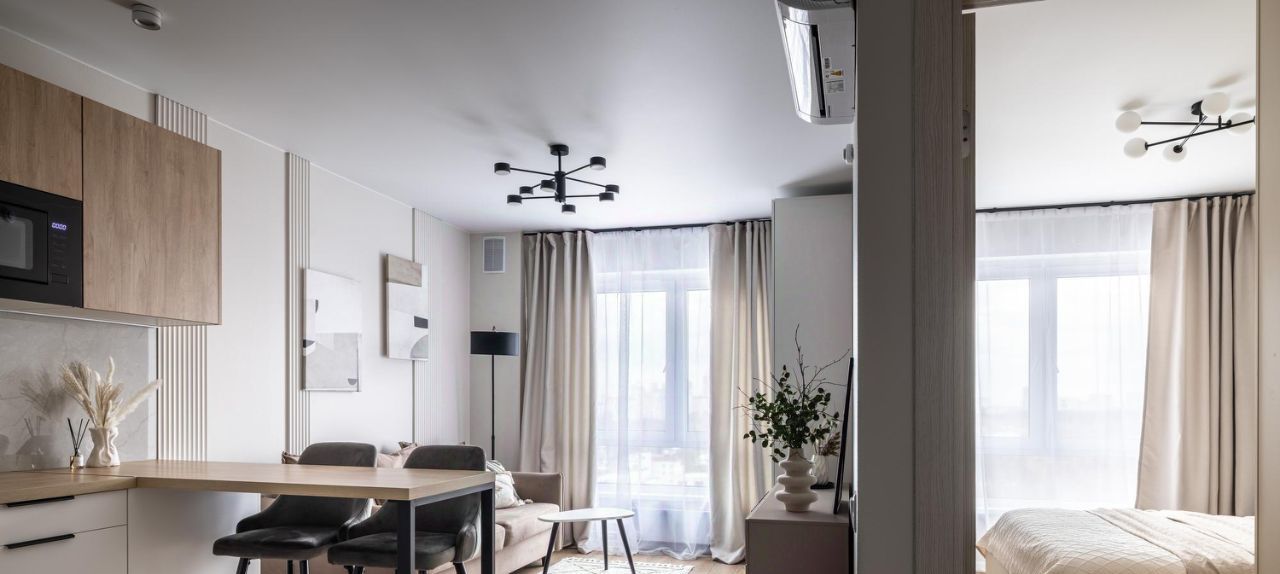 - Раскладной диван, кондиционер с управлением через Wi-Fi.