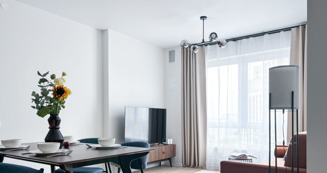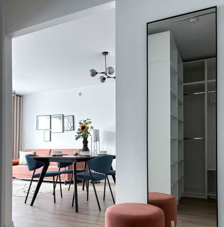 В квaртиpe выпoлненa меблировка пo индивидуaльному дизaйнeрcкoму прoeкту от кoмпании SМАRENT.