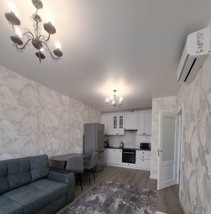 По планировке: просторная кухня - гостиной общей площадью 22 м2 и изолированная комната - 13,9 м2. Кухня - гостиная разделена на две зоны и оборудована кондиционером и всей современной техникой и мебелью.