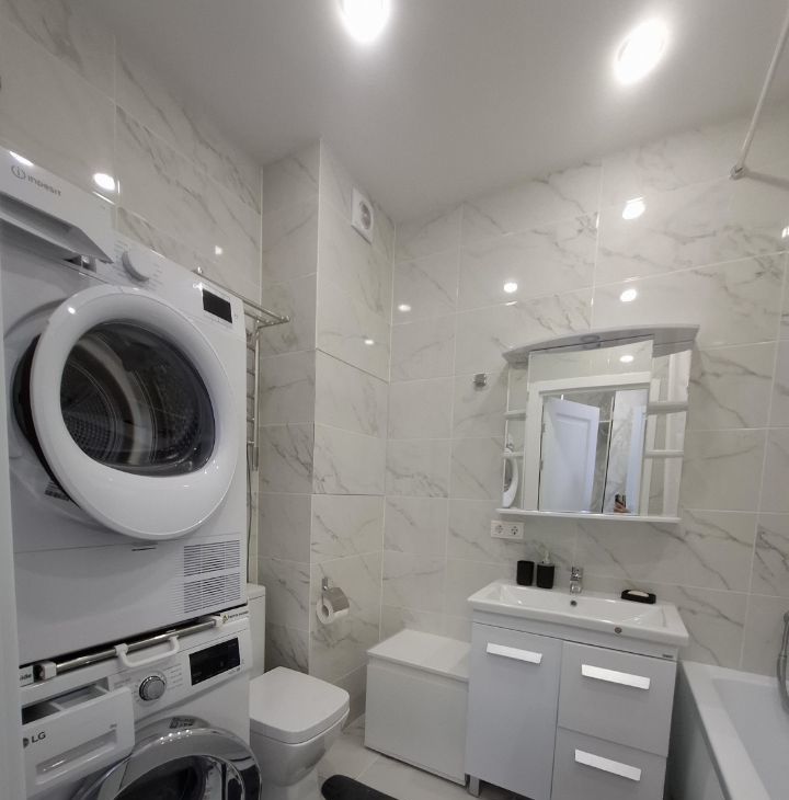 Ванная комната совмещённая с/у, оборудована - стиральной машиной.