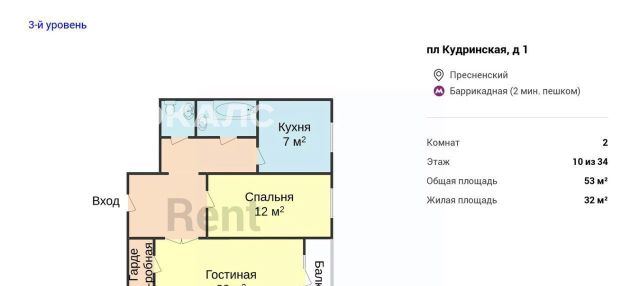 2-к кв. Москва Кудринская пл., 1 (53.0 м²)