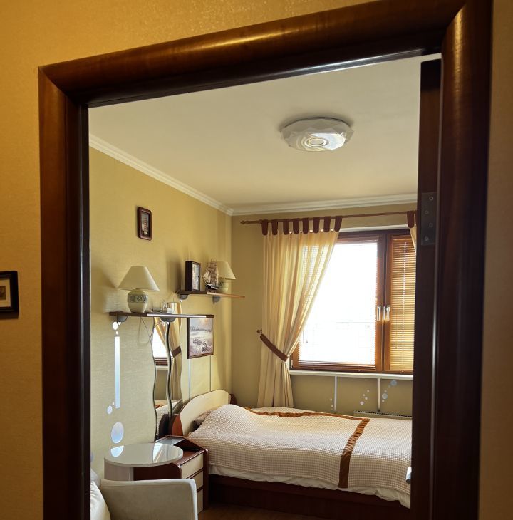 Спальня: Уютная спальня. Кровать с подъемным механизмом и ортопедическим матрасом. Вместительные шкафы для одежды.