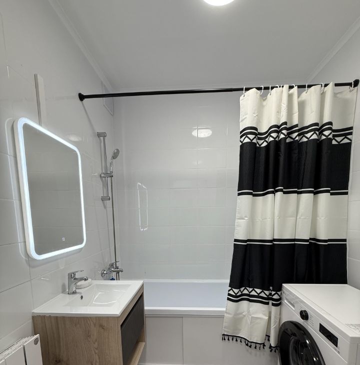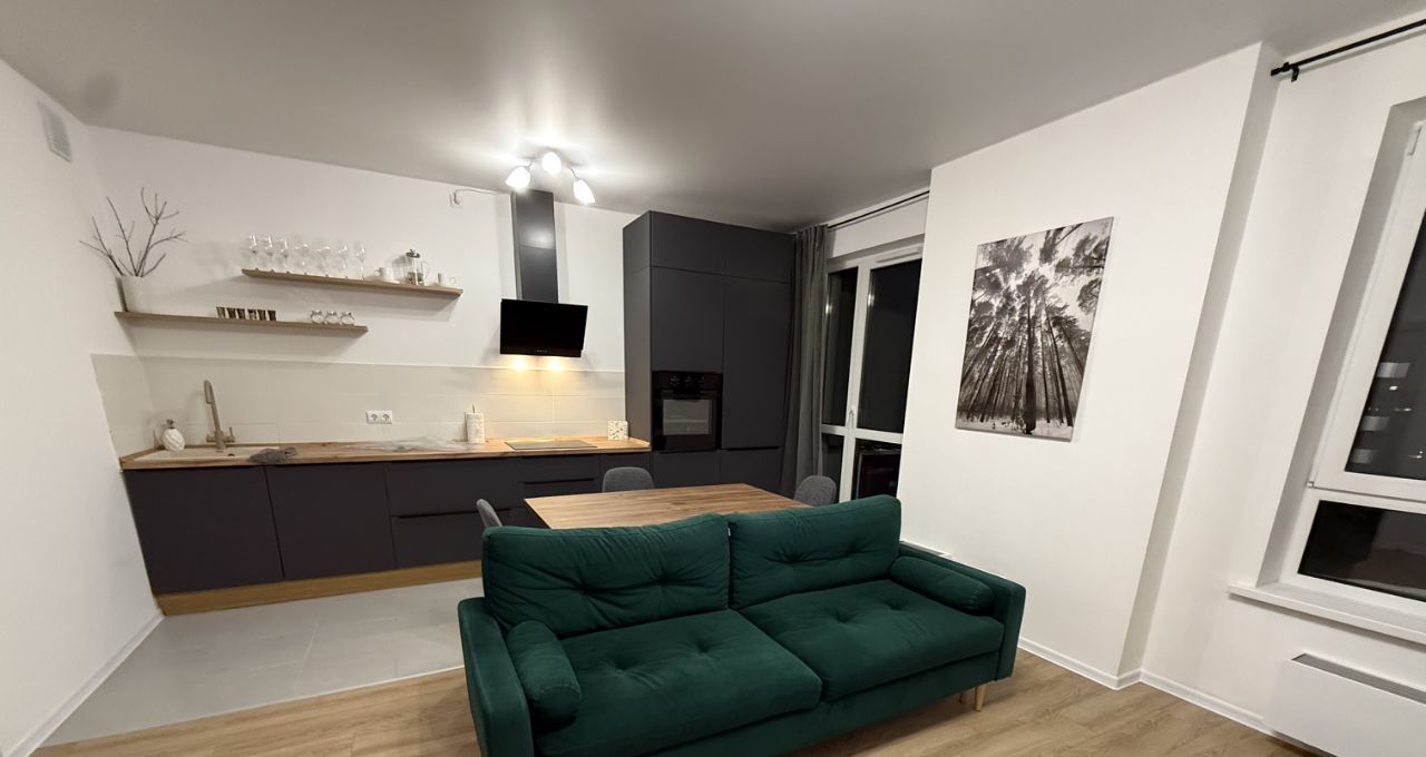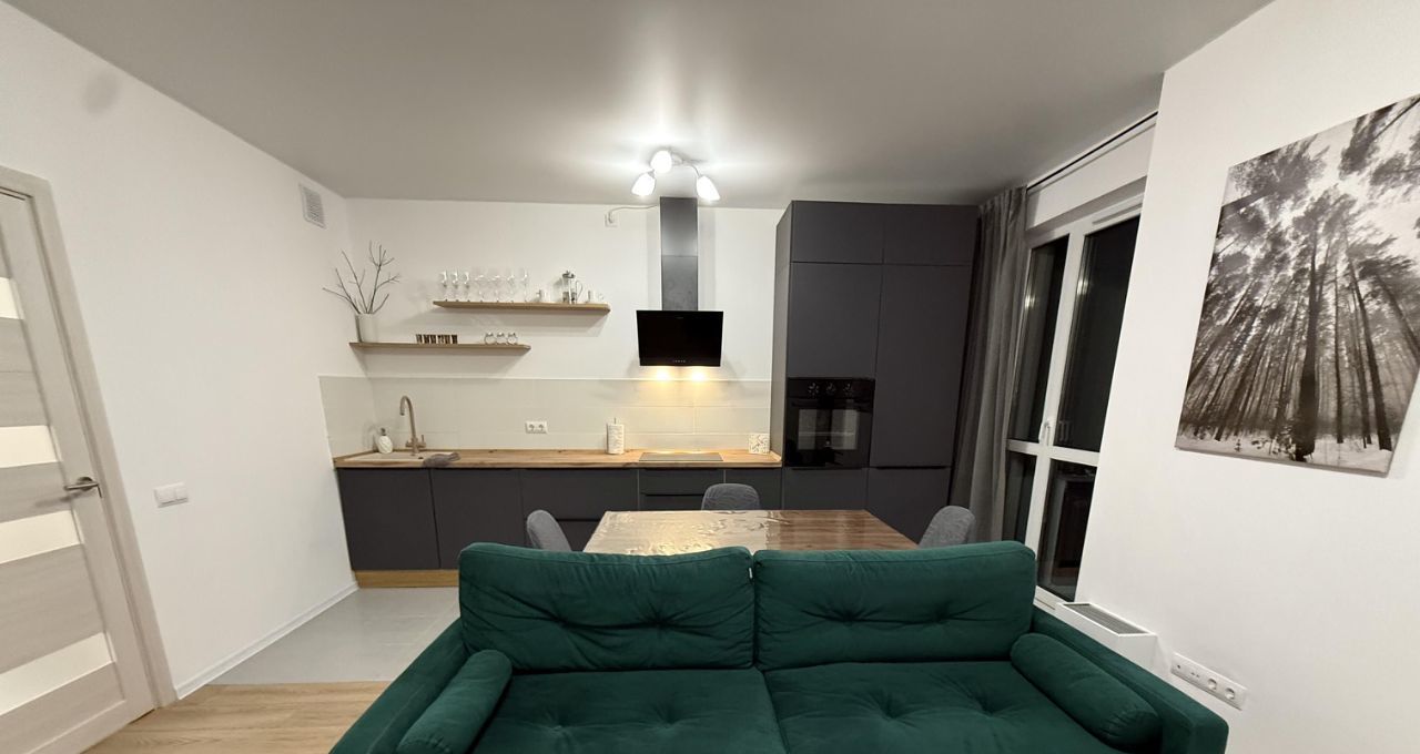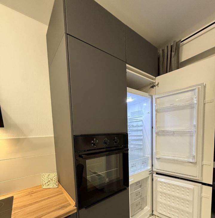 В квартире есть всё необходимое для комфортного проживания: новая современная мебель на кухне и в комнате, техника, включая встроенный холодильник, варочную индукционную плиту, духовой шкаф, посудомоечную и стиральную машины, а также телевизор. Ванная комната оснащена ванной.