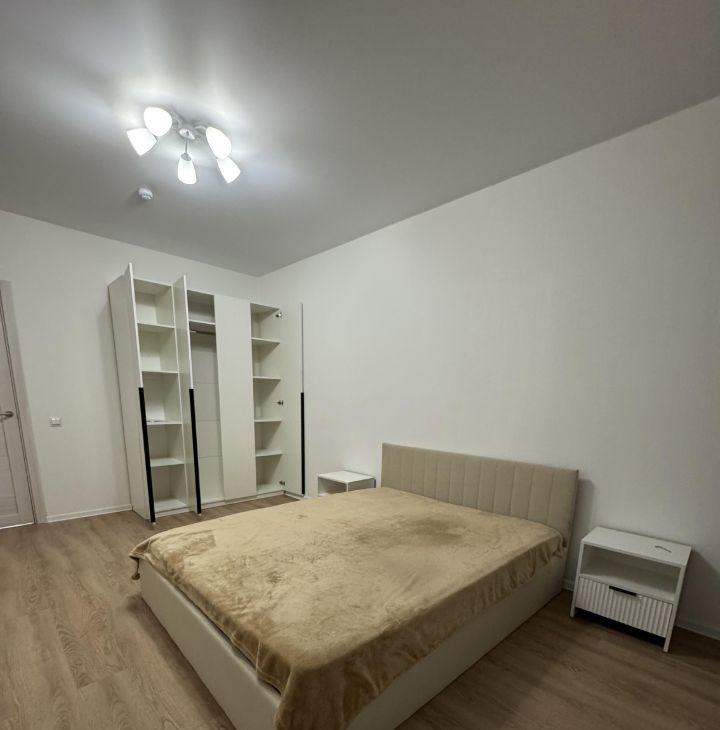Сдаётся в аренду светлая и уютная двухкомнатная квартира в новом доме, построенном в 2025 году. Общая площадь квартиры — 59 кв. м, расположена на 4 этаже 16-этажного дома. Высота потолков составляет 2.65 метра, что делает пространство более просторным. Всего в доме два лифта — пассажирский и грузовой. Из окон открывается вид на тихий двор.