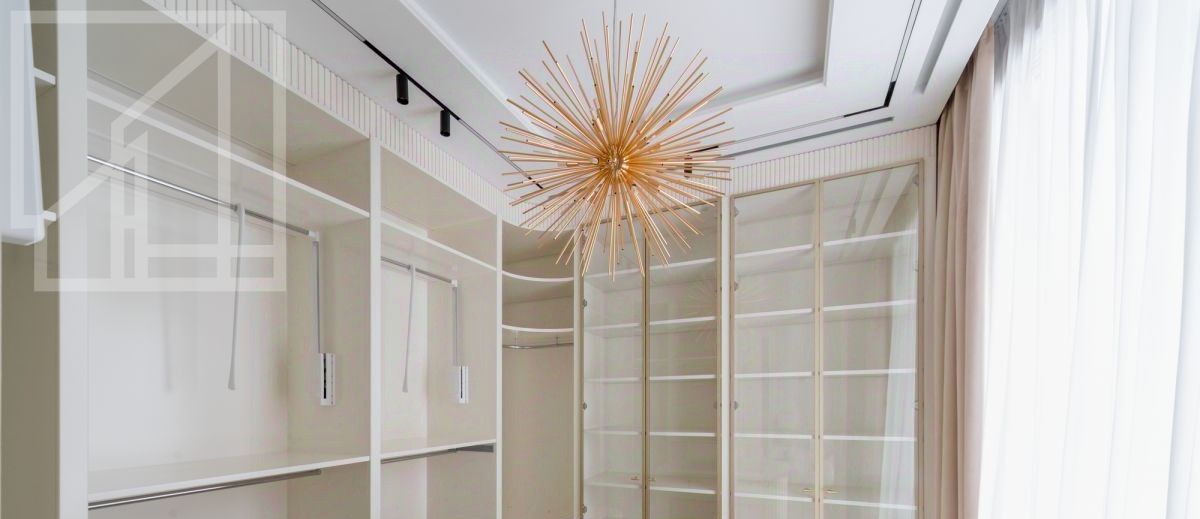 Планировка: просторная кухня - гостиная, мастер-спальня с большой гардеробной и санузлом,
