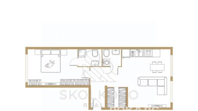 Площадь квартиры составляет 95 м² и отличается удачной планировкой, включающей просторную кухню-гостиную, уютную мастер-спальню с с/у, гардеробную и гостевой санузел.