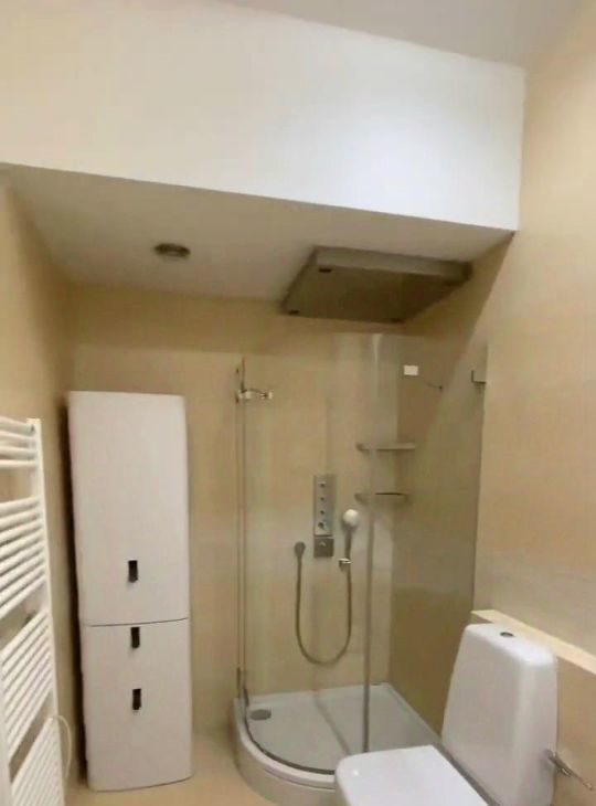 Ванная комната оснащена душевой кабиной, что очень удобно и современно. Окна выходят во двор, поэтому в квартире тихо и спокойно.