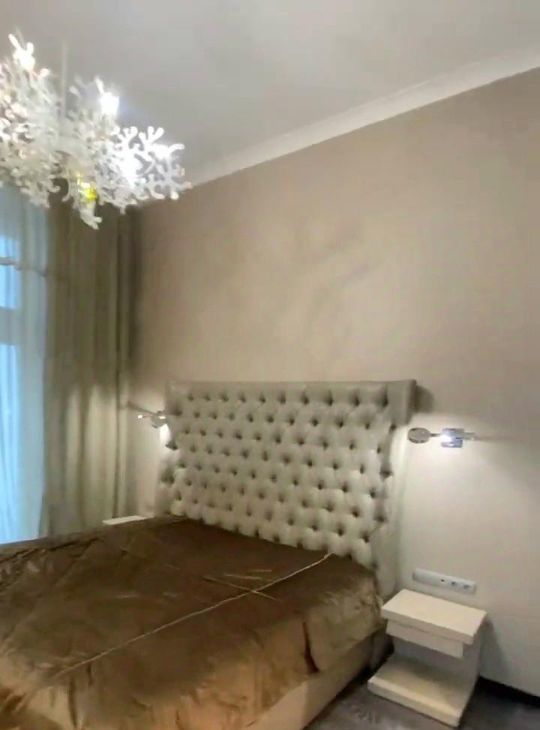 В квартире сделан дизайнерский ремонт, что придаёт ей уникальный стиль и уют. Здесь есть всё необходимое для комфортного проживания: кондиционер, холодильник, посудомоечная машина, телевизор и стиральная машина. Кухня оборудована всей необходимой мебелью и техникой для приготовления и приёма пищи. В комнатах также есть вся необходимая мебель. Спинка кровати заменена.