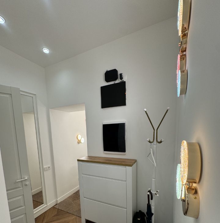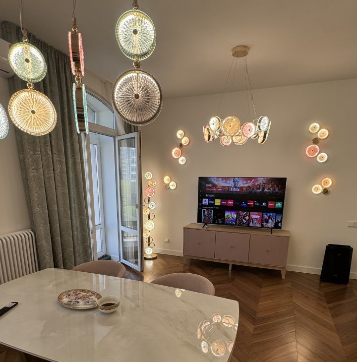 В квартире выполнен дорогой ремонт, сейфовая входная дверь с итальянскими замками, итальянские дизайнерские светильники. высокие 230см двери. В отделке интерьера использованы натуральные материалы: паркет натуральный американский орех, итальянский гранит и керамогранит.