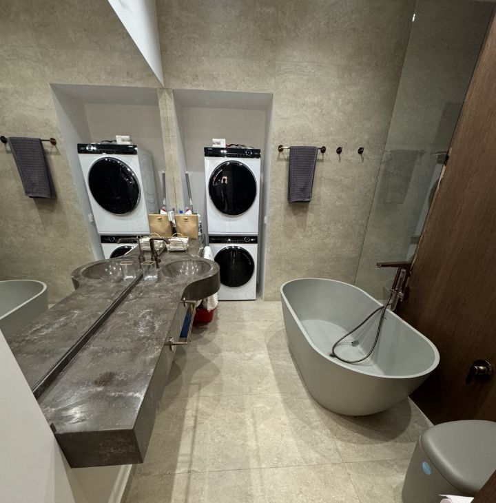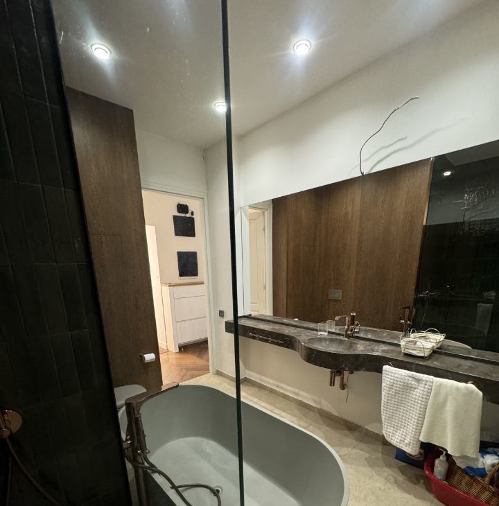 Просторная гостиная-кухня с шикарным видом. Большая ванная комната с отдельностоящей ванной и душевой с тропическим душем и встроенной Яндекс колонкой.