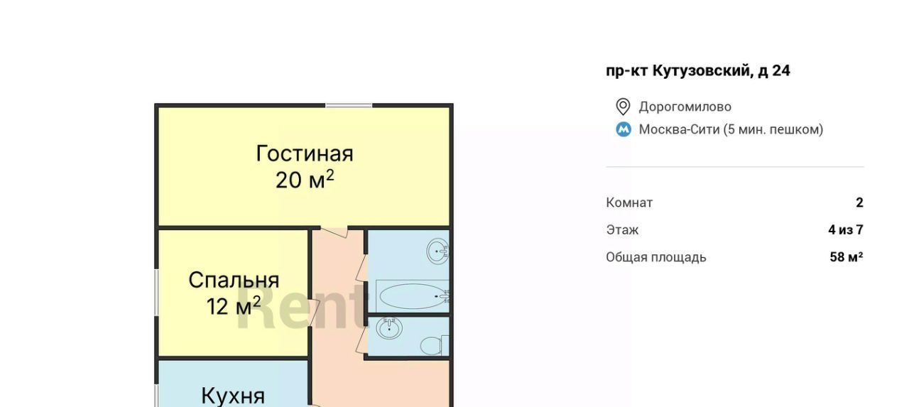2-к кв. Москва Кутузовский просп., 24 (58.0 м²)