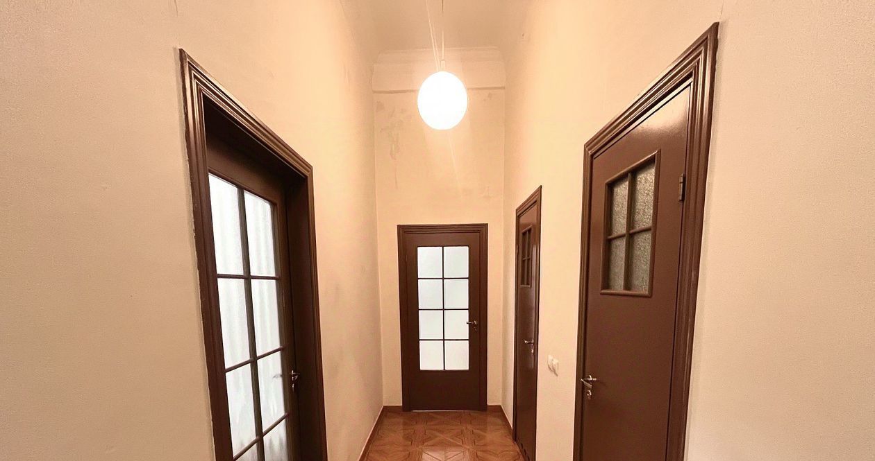 Двухкомнатная квартира с потолками 4.35 метра, окна выходят во двор, имеется балкон.