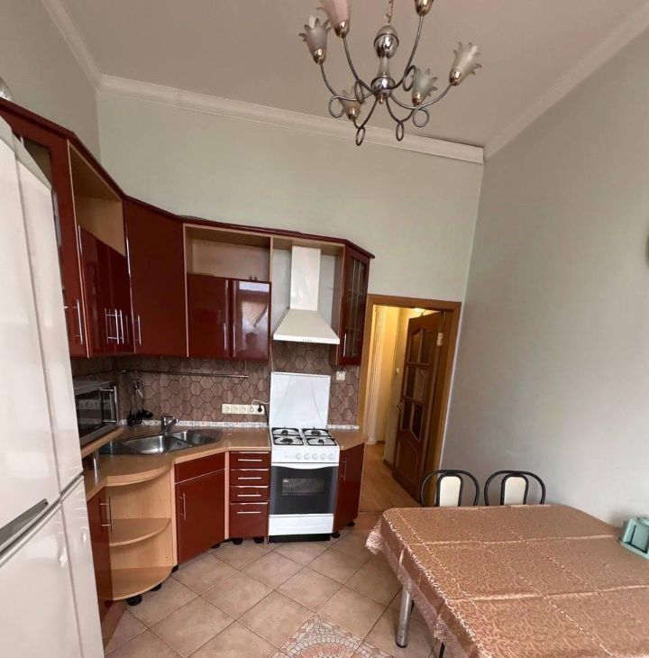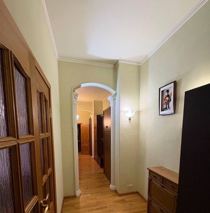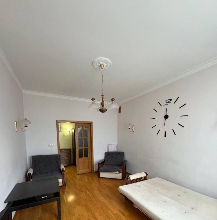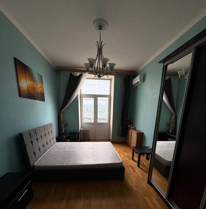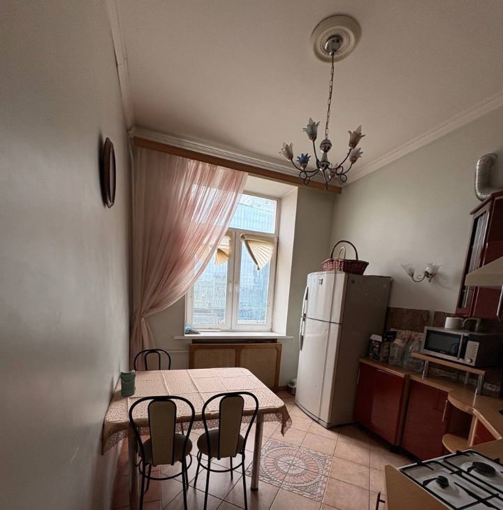 Сдается большая 2-х комнатная квартира в фасадном сталинском доме. Комнаты изолированные. Меблирована, оснащена бытовой техникой.