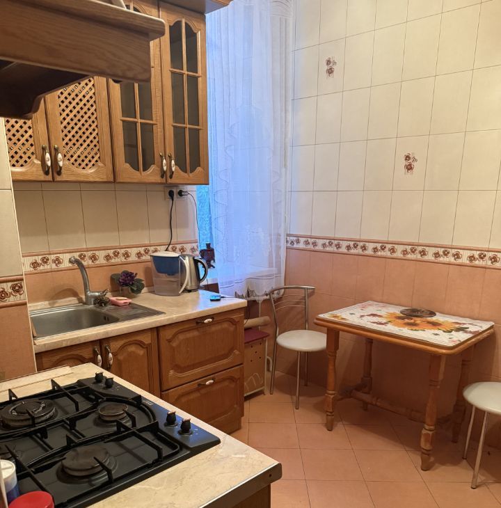 Сдаётся уютная двухкомнатная квартира в шаговой доступности от метро Киевская. Общая площадь — 54,4 кв. м, жилая площадь — 32 кв. м, кухня — 6 кв. м. Квартира расположена на 5 этаже 8-этажного дома 1957 года постройки. Высокие потолки — 3 метра создают ощущение простора. Окна выходят во двор, что обеспечит вам тишину и спокойствие.